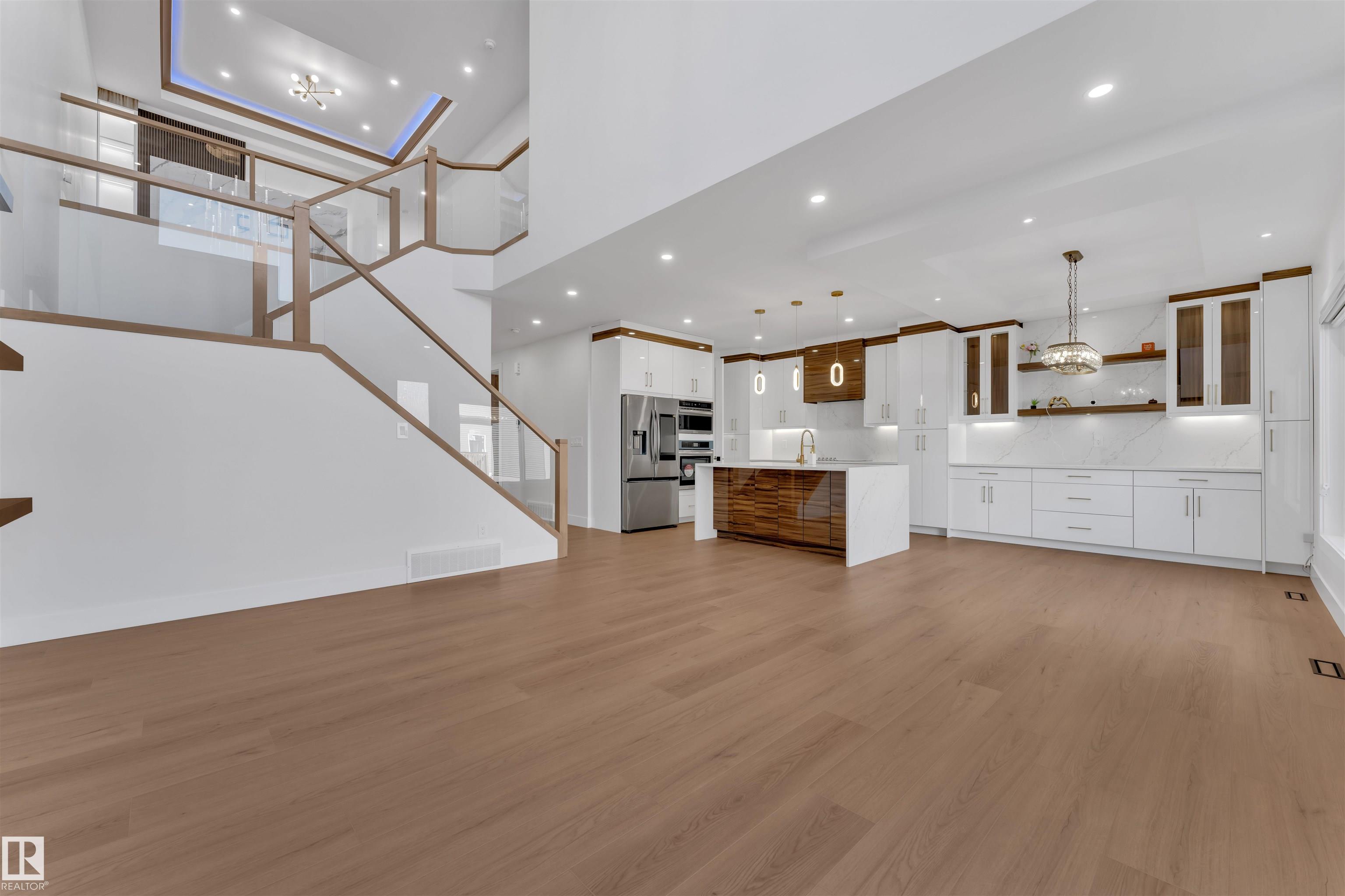 Stunning Fully Custom Home with Legal Secondary Suite Basement. Welcome to this fully custom home located in a quiet cul-de-sac, just steps away from the park. Designed for modern living, it features a double over size car garage, elegant double door entry, and a functional mud room. The main floor offers a bedroom with full bath, a spacious extended kitchen with dining nook, and a convenient spice kitchen. The impressive open-to-below living area fills the home with natural light, creating a bright and ...