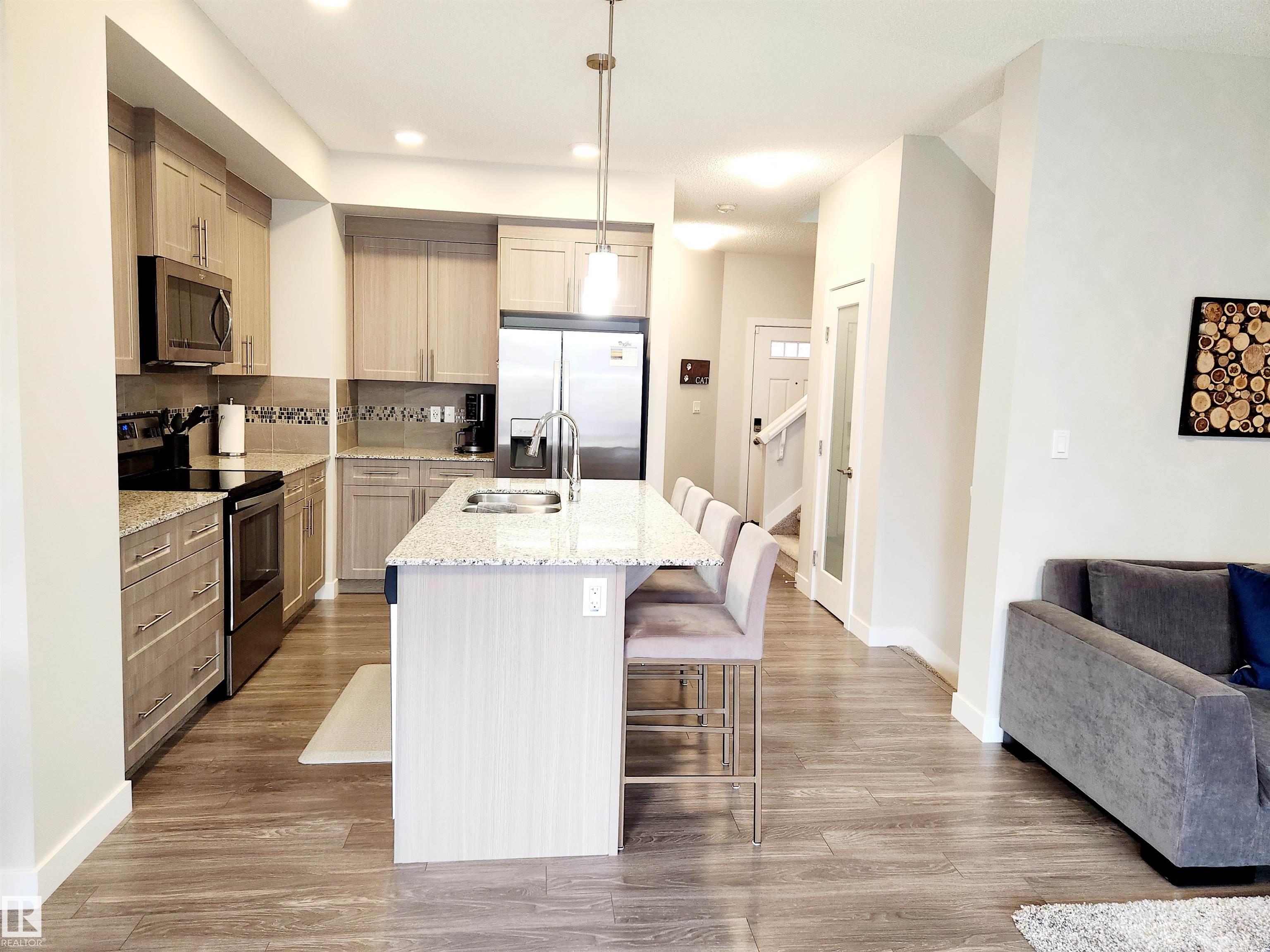 Welcome to this 1420 sqft 2-storey half duplex in the sought after community of Keswick! With a single attached garage and a bright open floor plan, this home is designed for both style and function. The spacious kitchen boasts a large island with seating for 4, granite countertops, S/S appliances, a pantry and plenty of cabinet space. It flows seamlessly into the dining and living area with a tucked-away 2pc bath and convenient garage entry. Upstairs, the primary suite offers a walk in closet with built-in...