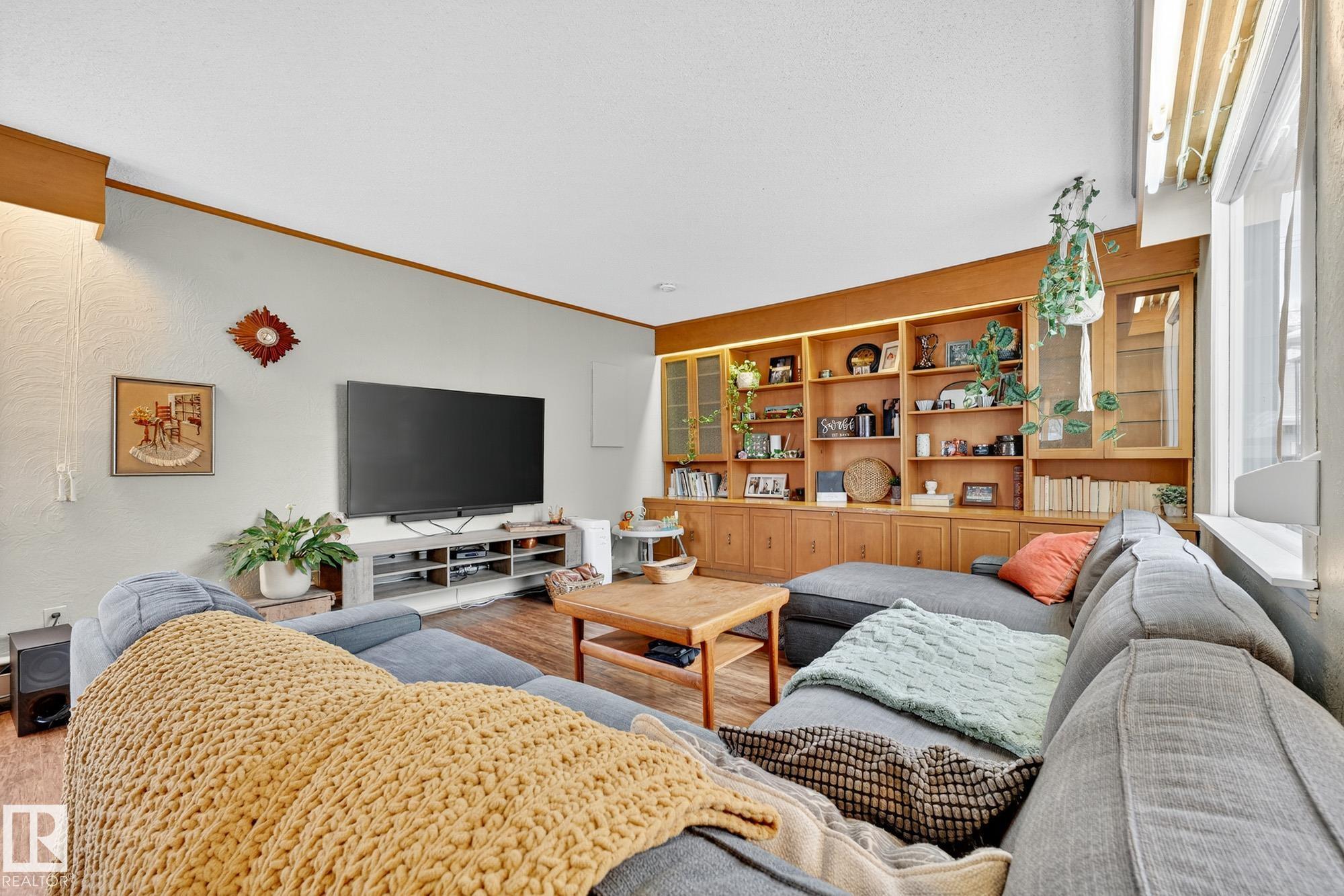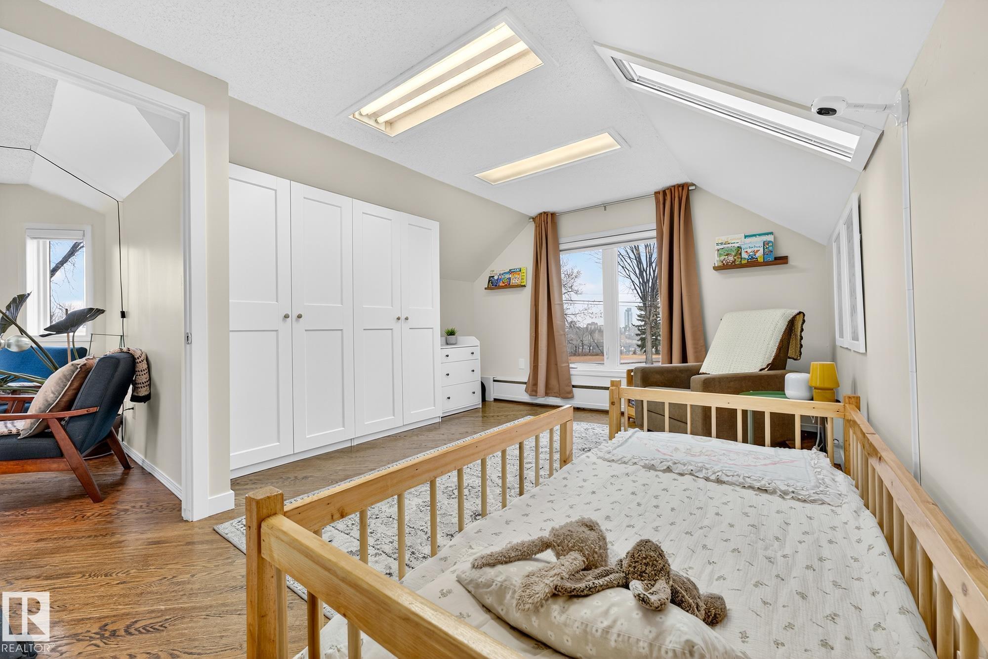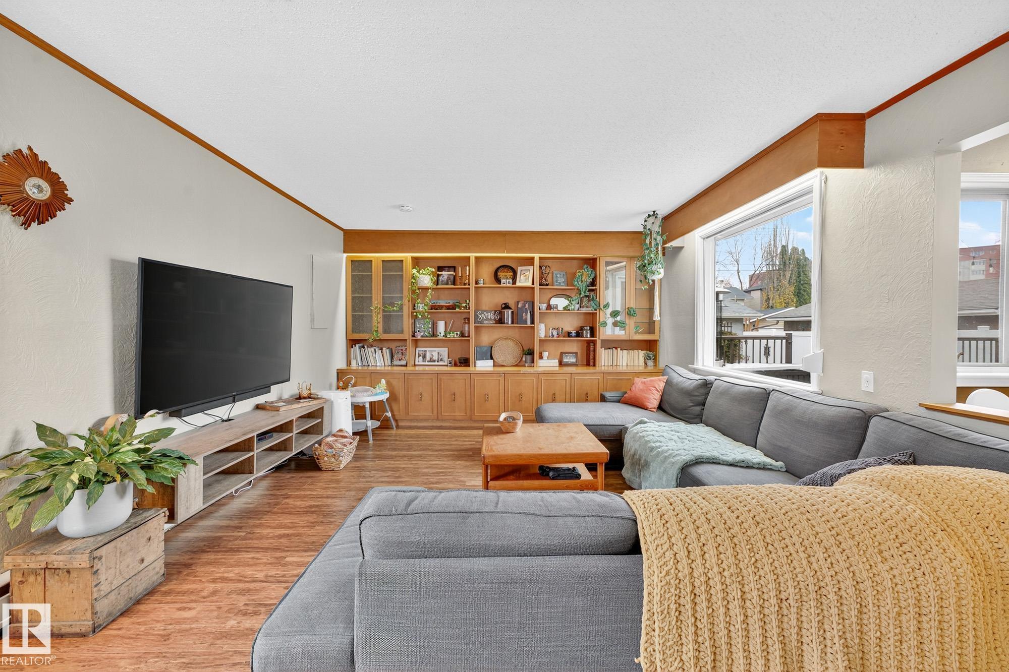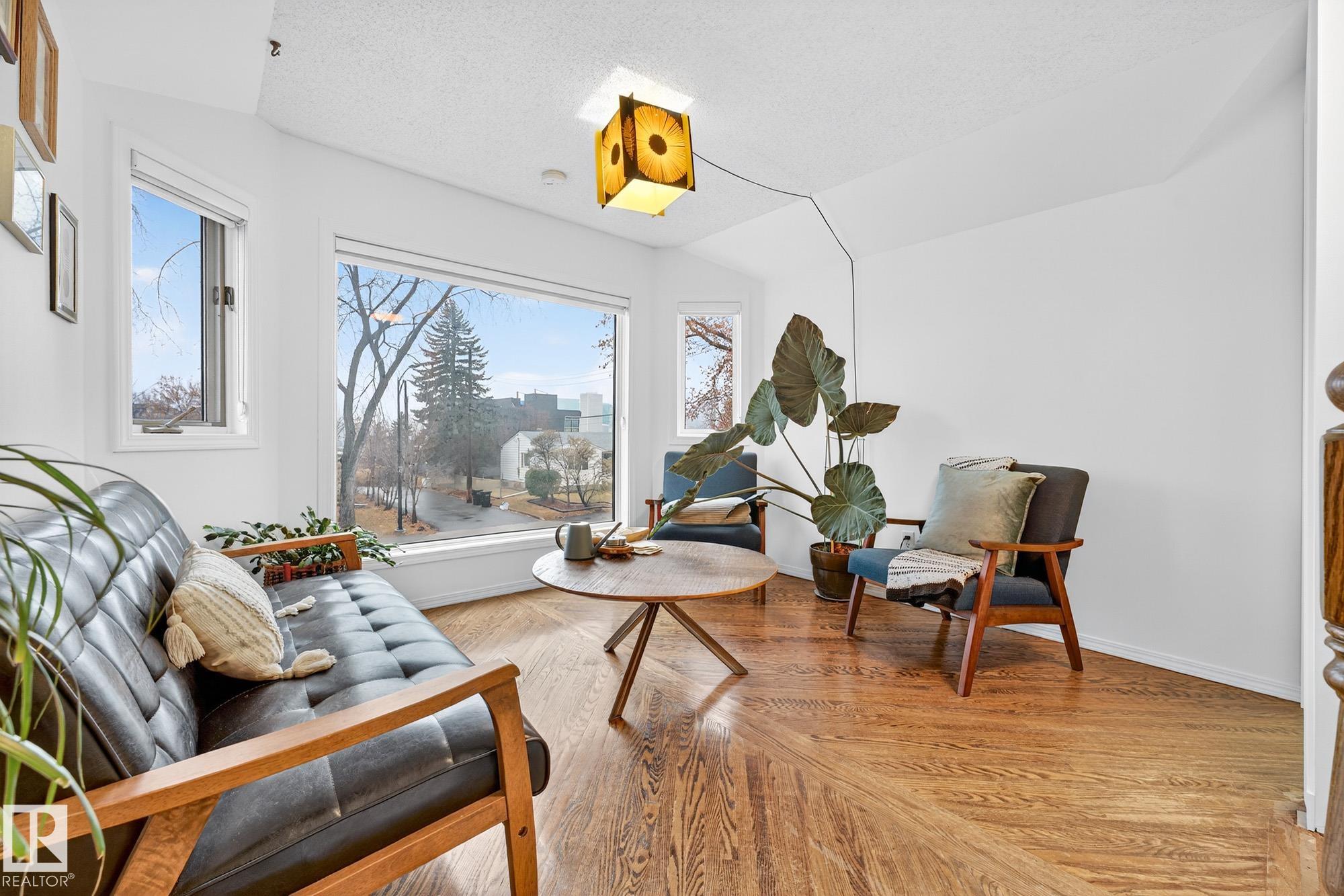 Incredible location in Strathearn, just steps from the river valley with skyline views and timeless charm. This 4 bedroom, 1.5-storey home offers bright, character-filled living spaces with bay windows and hardwood floors throughout. The main floor features a spacious living room with custom built-ins, family room, full bathroom, well-laid-out kitchen with stainless steel appliances, eat-up bar, and large patio doors that open onto the deck—perfect for indoor/outdoor flow and additional bedroom. Upstairs yo...