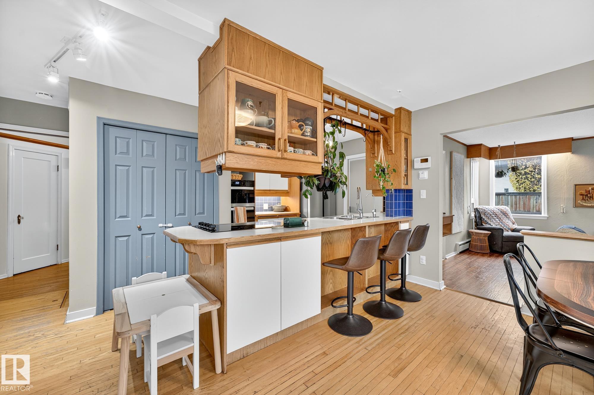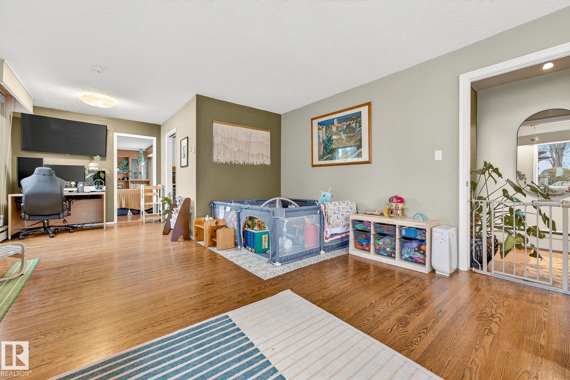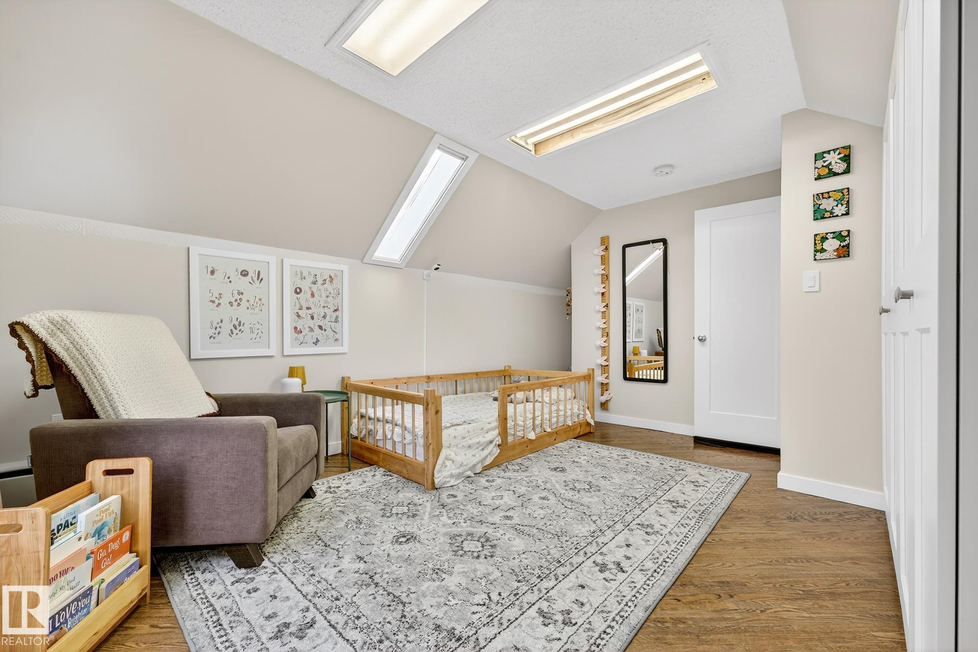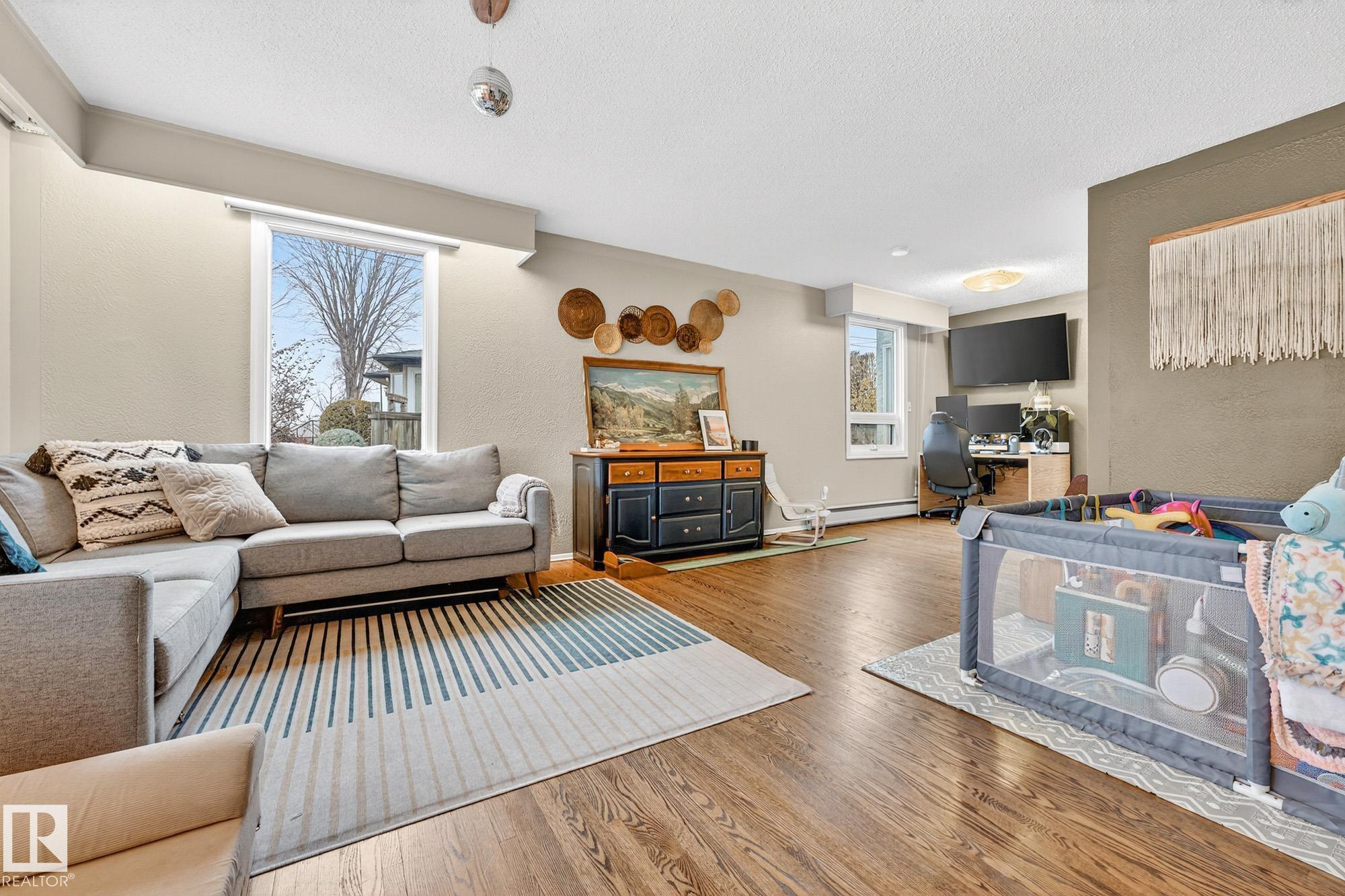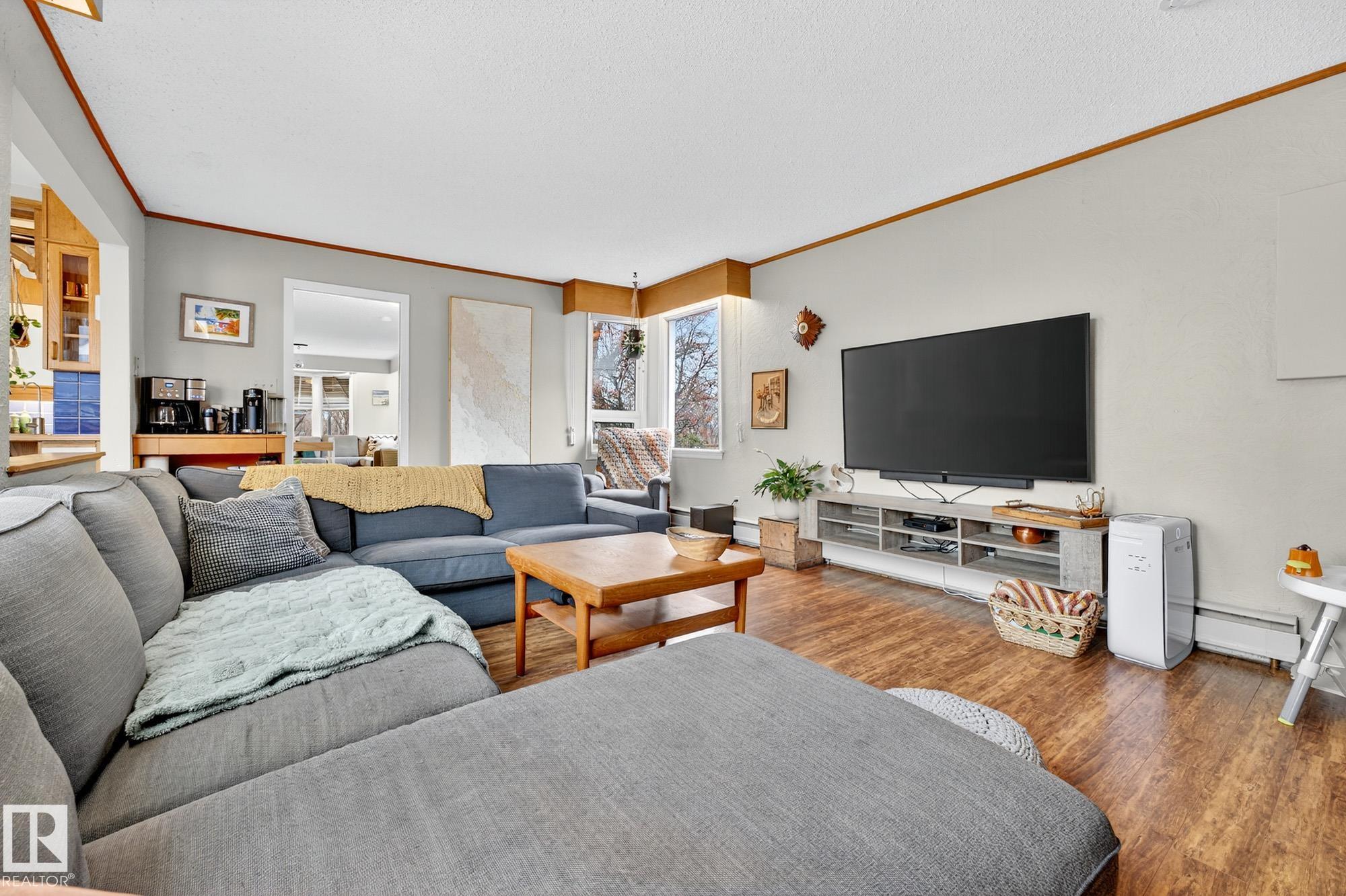 Incredible location in Strathearn, just steps from the river valley with skyline views and timeless charm. This 4 bedroom, 1.5-storey home offers bright, character-filled living spaces with bay windows and hardwood floors throughout. The main floor features a spacious living room with custom built-ins, family room, full bathroom, well-laid-out kitchen with stainless steel appliances, eat-up bar, and large patio doors that open onto the deck—perfect for indoor/outdoor flow and additional bedroom. Upstairs yo...